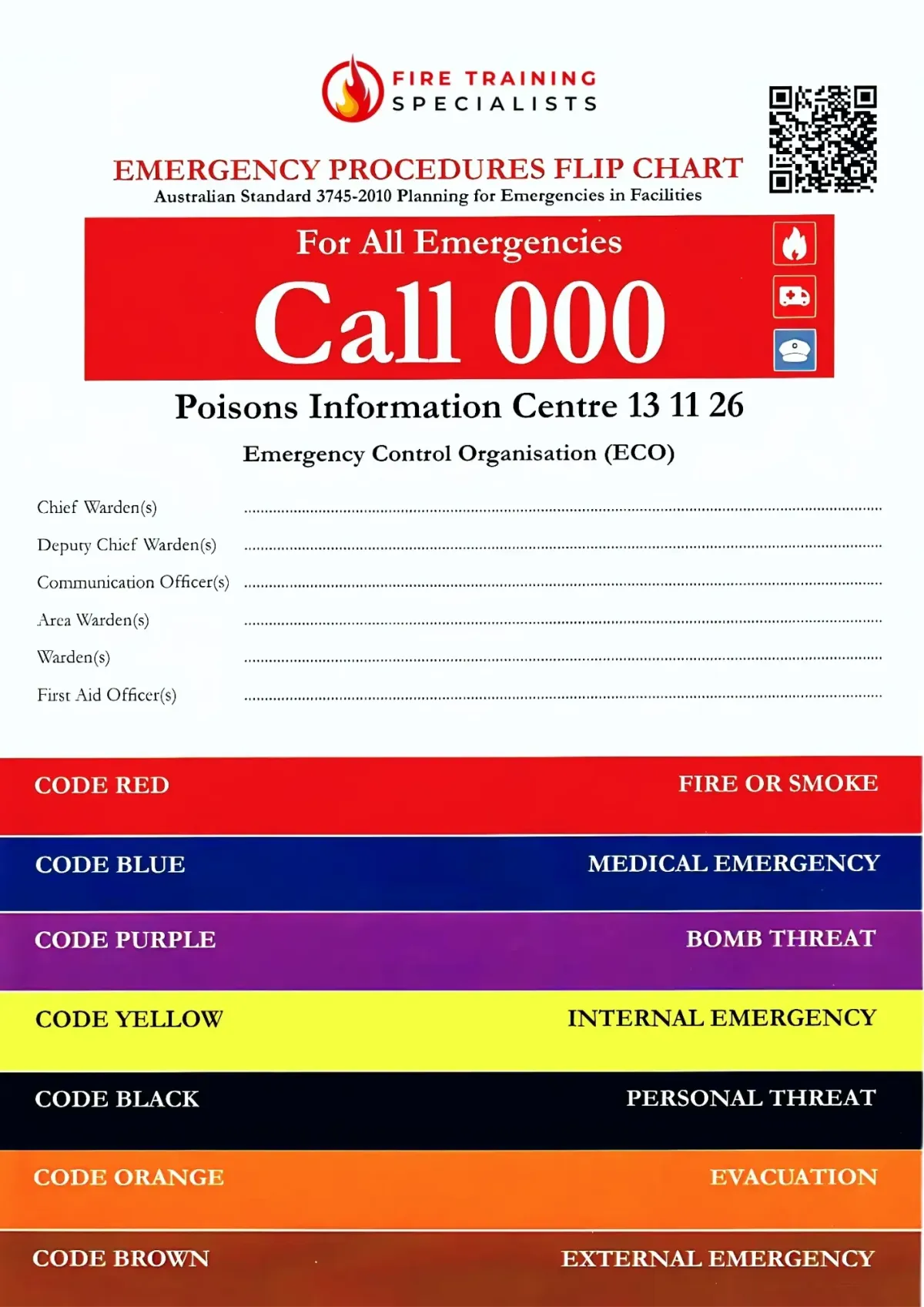 We can customise your Emergency Procedures Flip Chart for your specific risks.